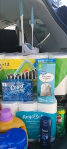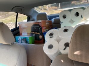 Respecting the veterans privacy, Paul picked up the items and delivered them to the Veteran.  Items included a crock pot, air fryer, toiletries, pillows, towels, cleaning supplies and more.